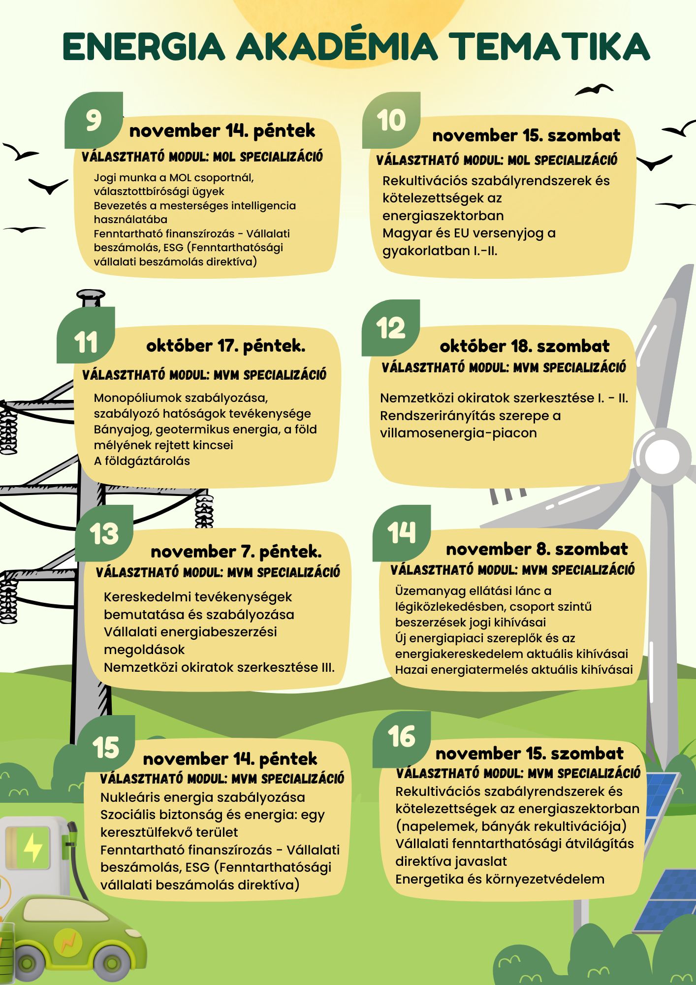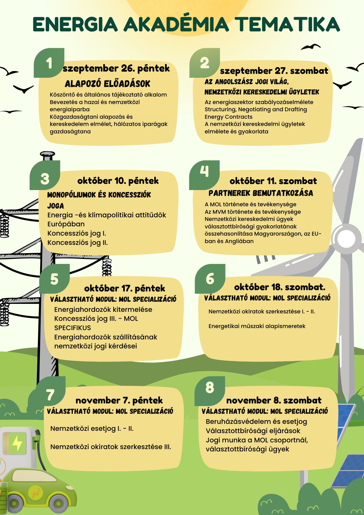 Az elmúlt időszakban robbanásszerűen nőtt az energiaszektor jelentősége, és e jogterület képzésbeli hiányossága hívta életre az Energia Akadémiát. A MOL és az MVM, mint piacvezető szereplők közreműködésével, a JÖSz Intézet szervezésében valósul meg hazánkban ez az innovatív, egyedülálló képzés, melynek célja az energiajog területén átfogó elméleti és gyakorlati tudás átadása a joghallgatóknak és pályakezdő jogászoknak.